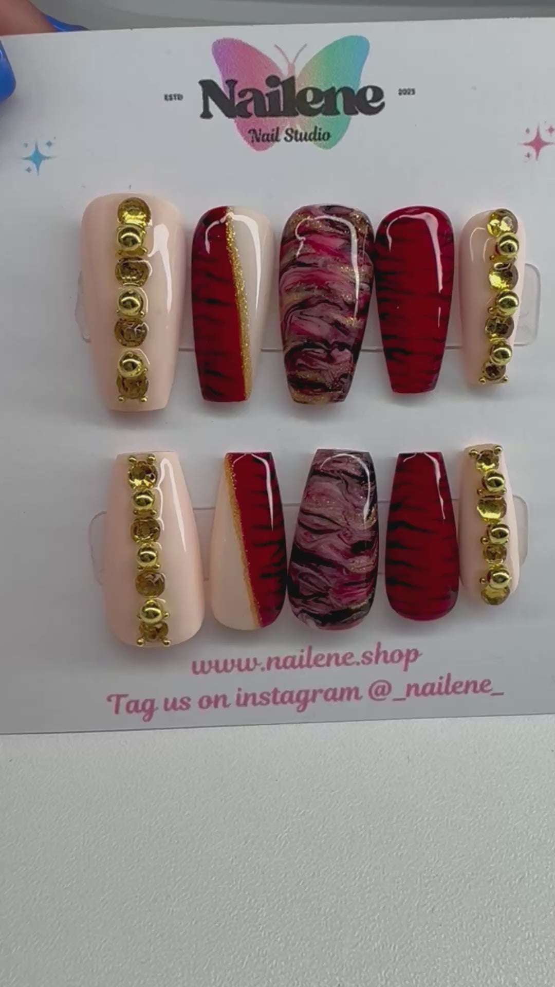 Make a bold statement with Tiger Flame press-on nails, featuring a captivating blend of tiger stripes and fiery flame designs. These stunning nails deliver instant glamour without the salon visit—just apply and go.